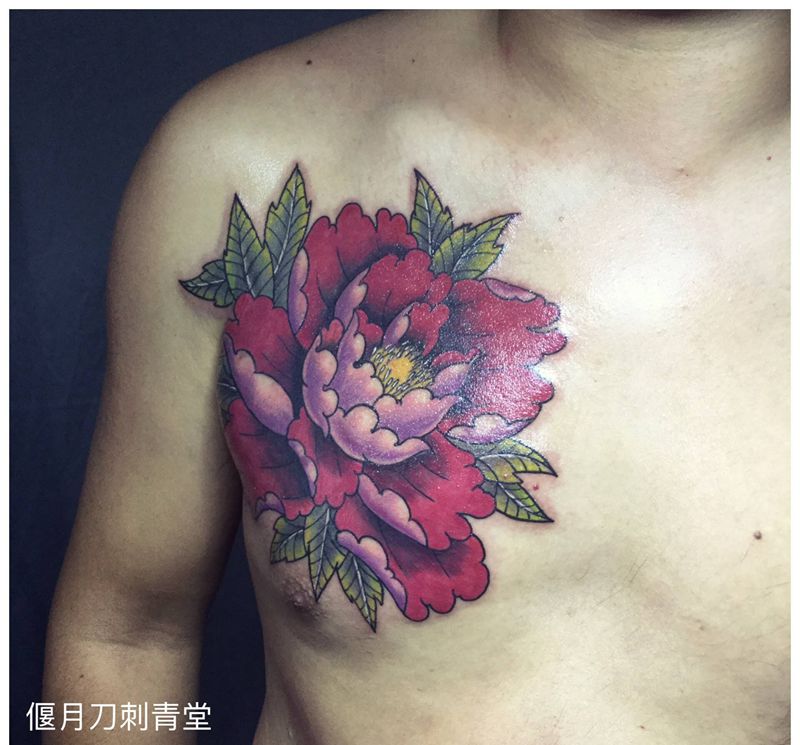 当前位置: 首页 >山西省运城市纹身店-偃月刀刺青工作室纹身图案>牡丹花纹身图片_胸部新传统原创牡丹纹身图案