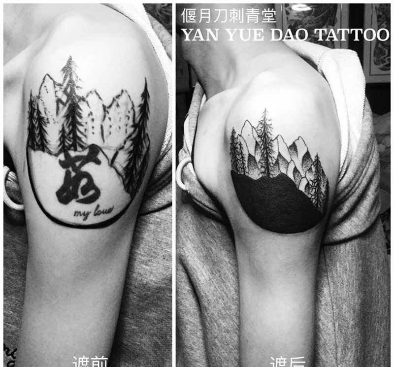 遮盖风景点刺纹身图片_成品原创手臂欧美点刺遮盖纹身图案