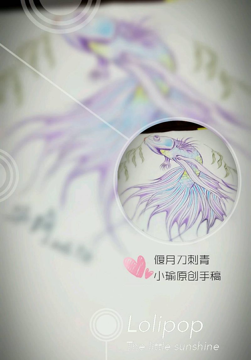 当前位置: 首页 >山西省运城市纹身店-偃月刀刺青工作室纹身图案>原创鱼纹身图片_背部清新原创字母鱼成品手稿纹身图案