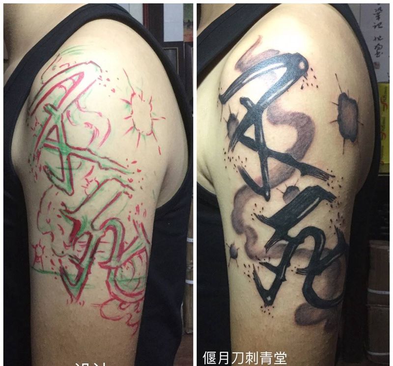 当前位置: 首页 >山西省运城市纹身店-偃月刀刺青工作室纹身图案>水墨字设计纹身图片_原创成品手稿水墨字纹身图案