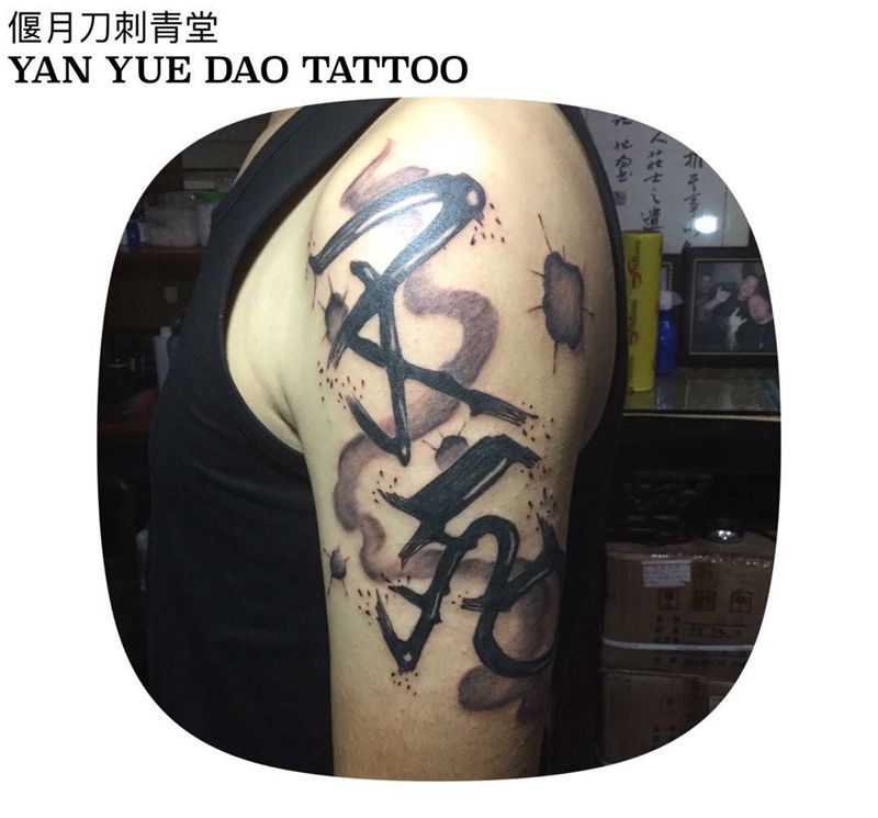 当前位置: 首页 >山西省运城市纹身店-偃月刀刺青工作室纹身图案>水墨字设计纹身图片_原创成品手稿水墨字纹身图案