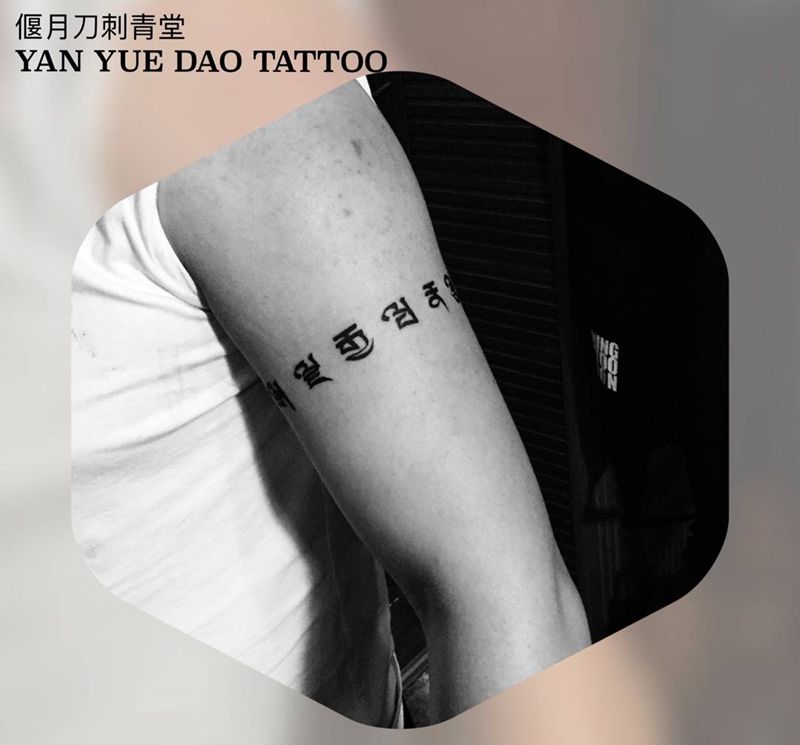 当前位置: 首页 >山西省运城市纹身店-偃月刀刺青工作室纹身图案>臂环藏文纹身图片_成品手臂图腾藏文臂环纹身图案