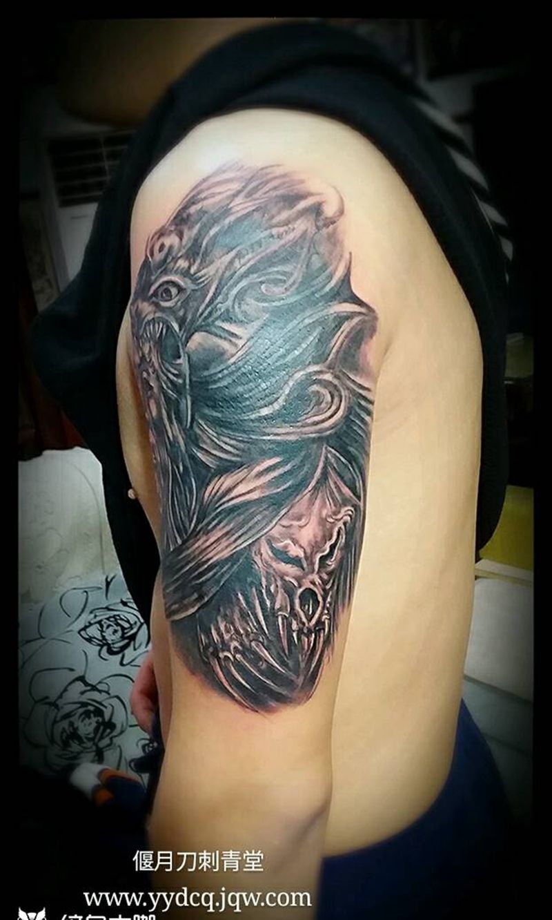 • 纹身吧推荐的披肩图腾半胛纹身图案作品展示