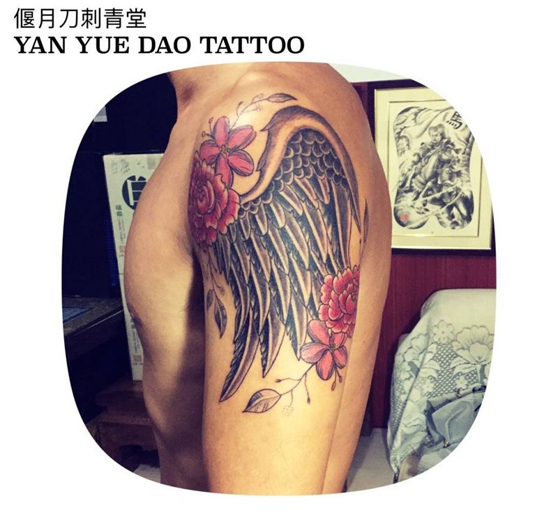 原创翅膀和花纹身图片_原创手稿成品手臂欧美翅膀花纹身图案