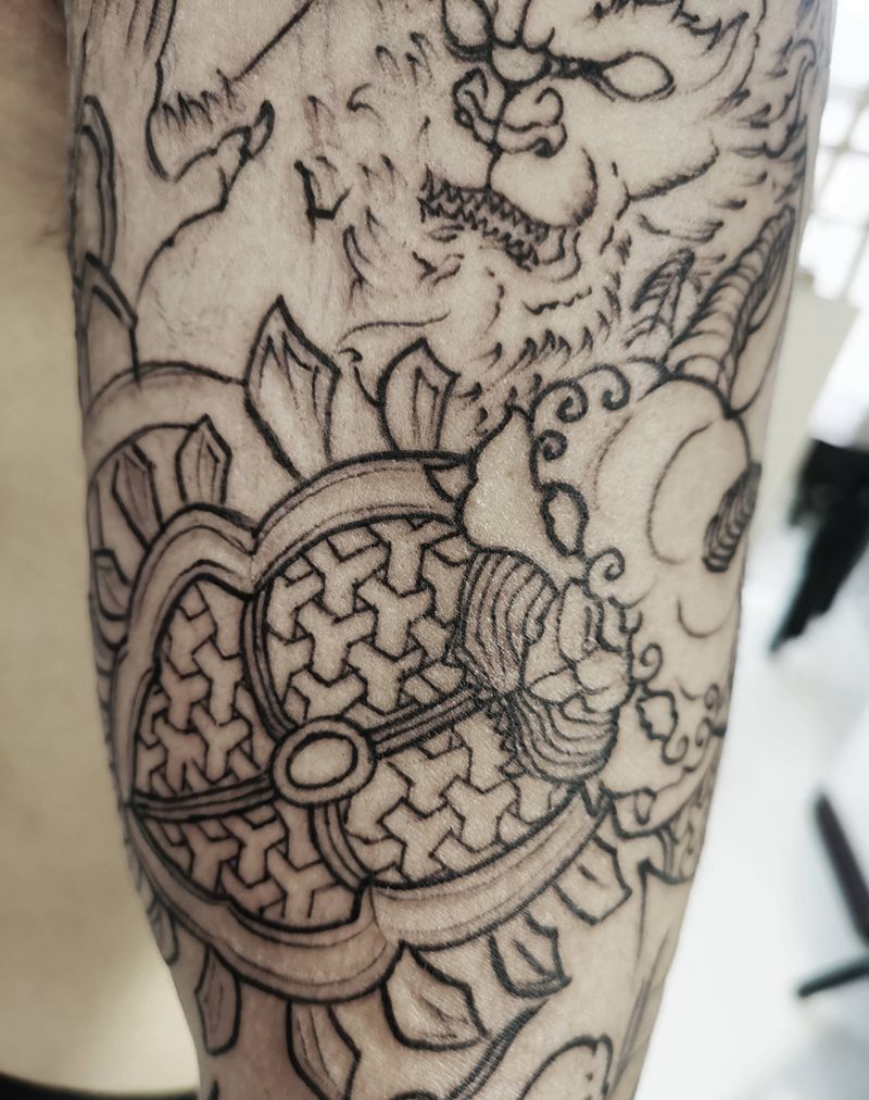 • T网红王老大花腿龙纹身图片_腿部新传统纹身图案