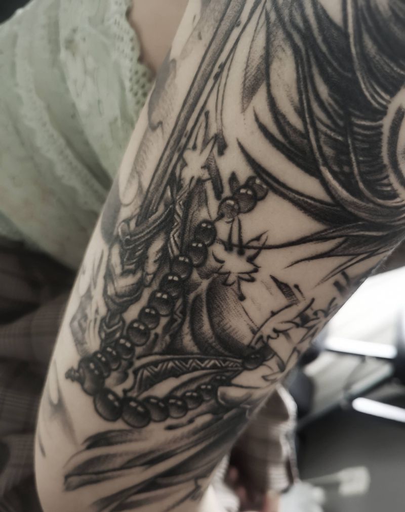 当前位置: 首页 >山西省临汾市纹身店-G·tattoo小盖刺青工作室纹身图案>传统钟馗细节纹身图片_手臂新传统纹身图案