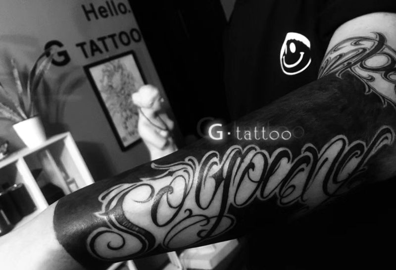 当前位置: 首页 >山西省临汾市纹身店-G·tattoo小盖刺青工作室纹身图案>奇卡诺遮盖纹身图片_手臂花体字几何纹身图案