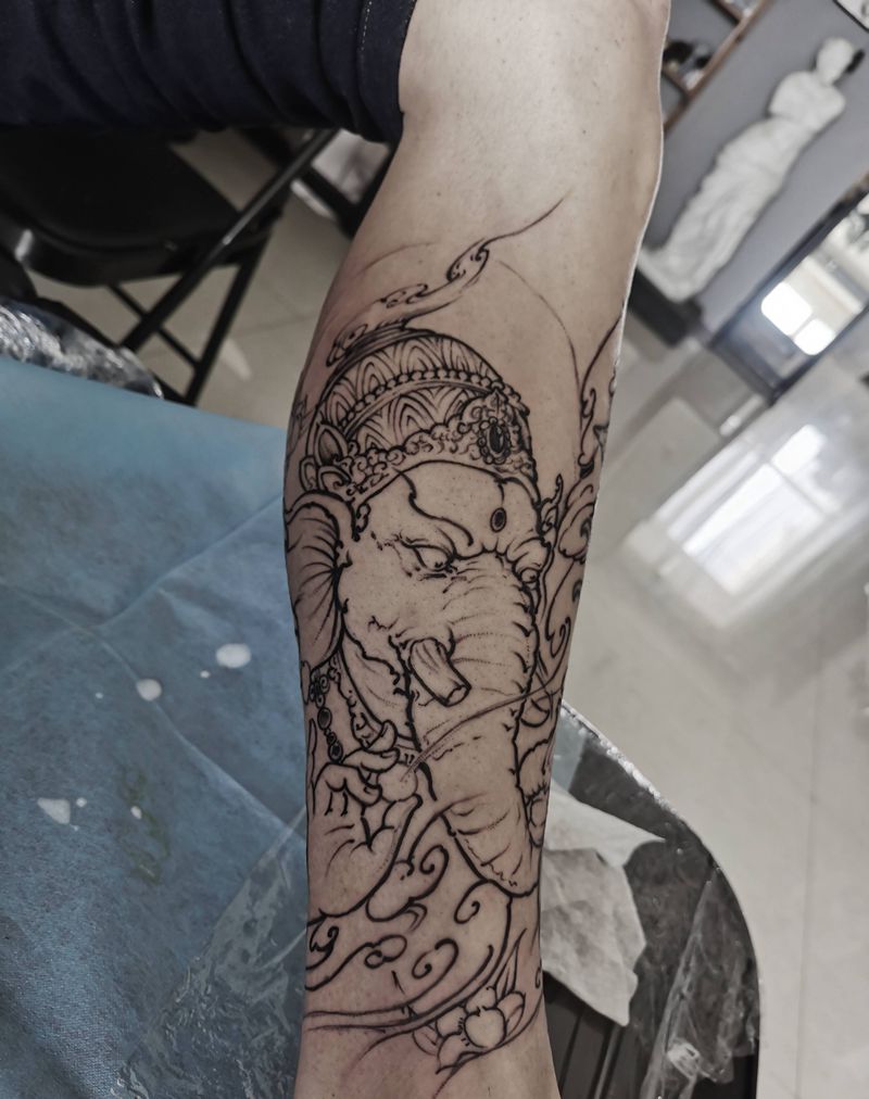当前位置: 首页 >山西省临汾市纹身店-G·tattoo小盖刺青工作室纹身图案>象神(线条)纹身图片_新传统纹身图案