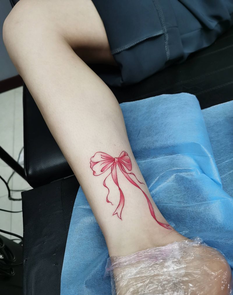 当前位置: 首页 >山西省临汾市纹身店-G·tattoo小盖刺青工作室纹身图案>蝴蝶结纹身图片_腿部水彩纹身图案