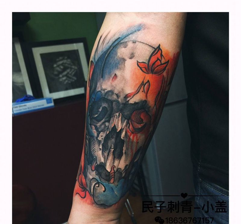 当前位置: 首页 >山西省临汾市纹身店-G·tattoo小盖刺青工作室纹身图案>骷髅纹身图片_成品手臂欧美原创纹身图案
