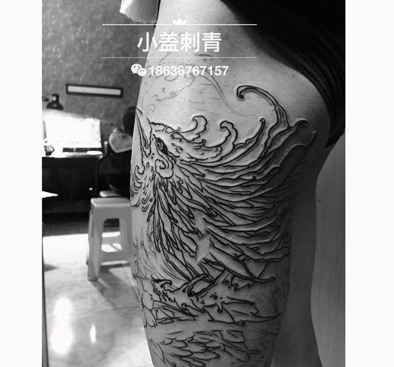 当前位置: 首页 >山西省临汾市纹身店-G·tattoo小盖刺青工作室纹身图案>大腿凤凰线条纹身图片