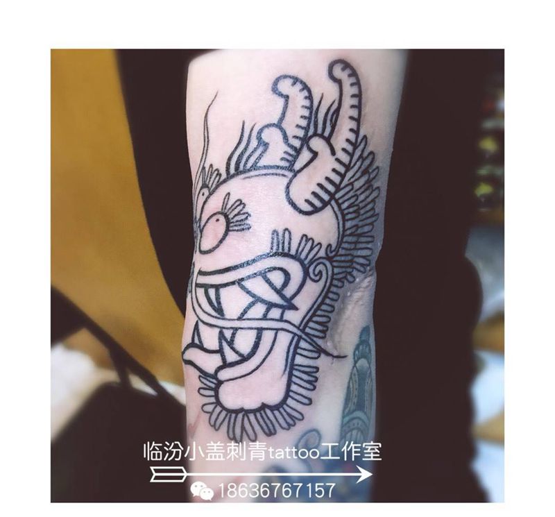 • T包小腿吹火男+阿多福纹身图片_腿部老传统新传统吹火男阿