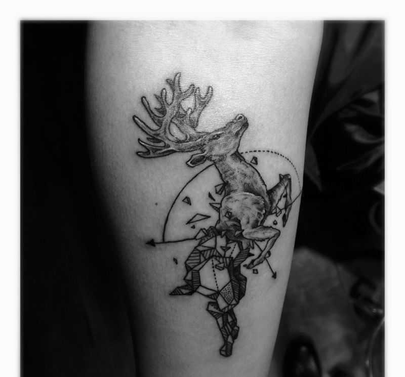 当前位置: 首页 >山西省临汾市纹身店-G·tattoo小盖刺青工作室纹身图案>几何鹿纹身图片_成品手臂清新几何动物原创情侣纹身图案