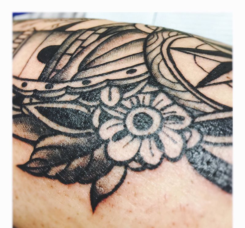 old school(未完)纹身图片_成品腿部欧美几何字符静物植物情侣原创old school纹身图案