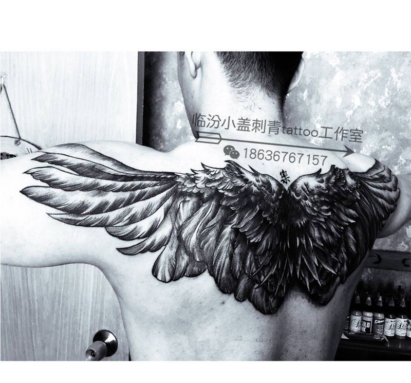翅膀(遮盖)纹身图片_成品背部欧美原创纹身图案