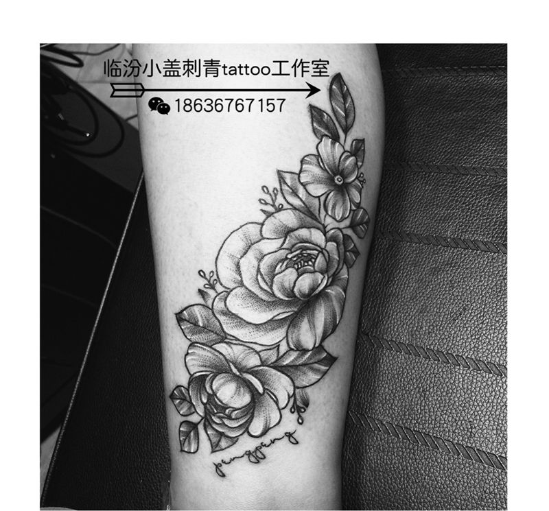 素花纹身图片_成品腿部清新植物情侣原创纹身图案