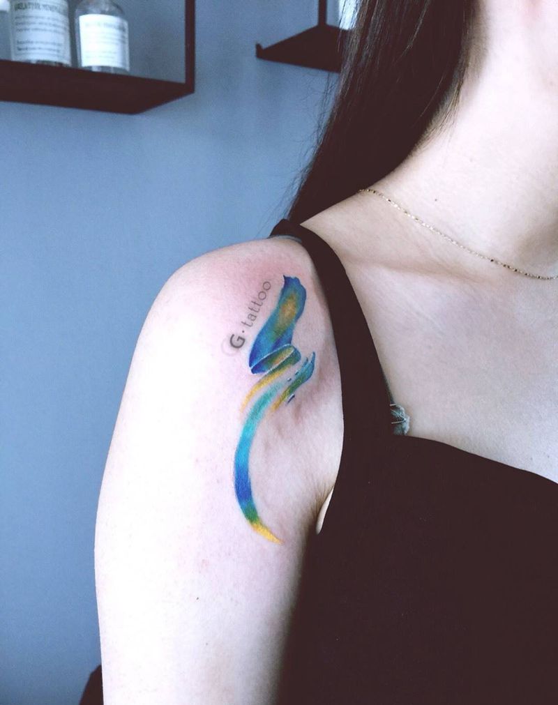 水墨风彩色纹身图片_成品手稿肩部清新几何字符情侣原创纹身图案