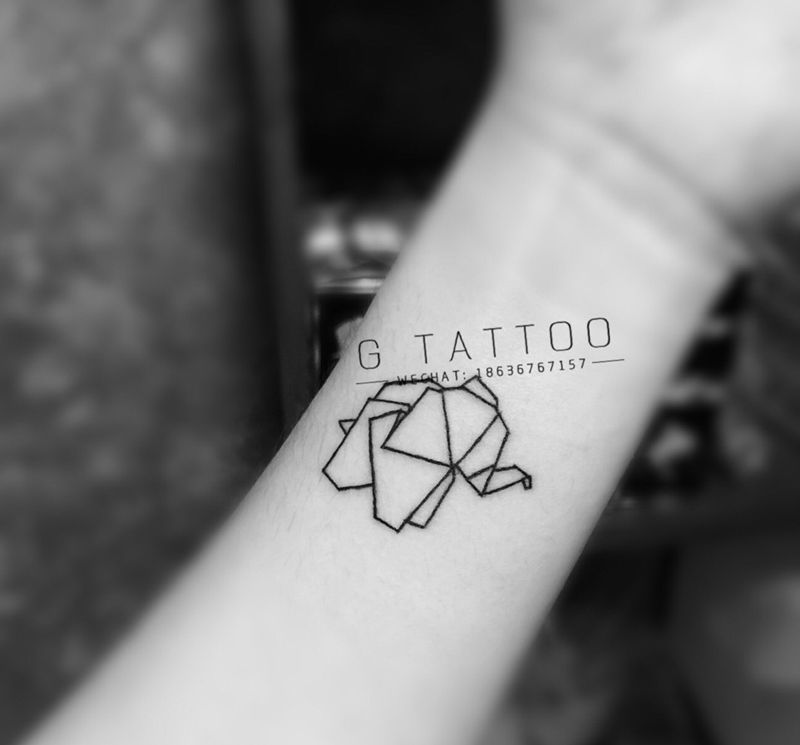 折纸小象纹身图片_成品手臂清新几何动物原创情侣纹身图案