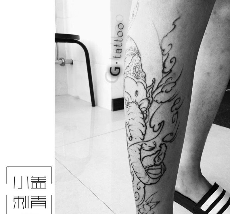 当前位置: 首页 >山西省临汾市纹身店-G·tattoo小盖刺青工作室纹身图案>小腿象神纹身图片_成品手稿腿部传统动物原创情侣纹身图案