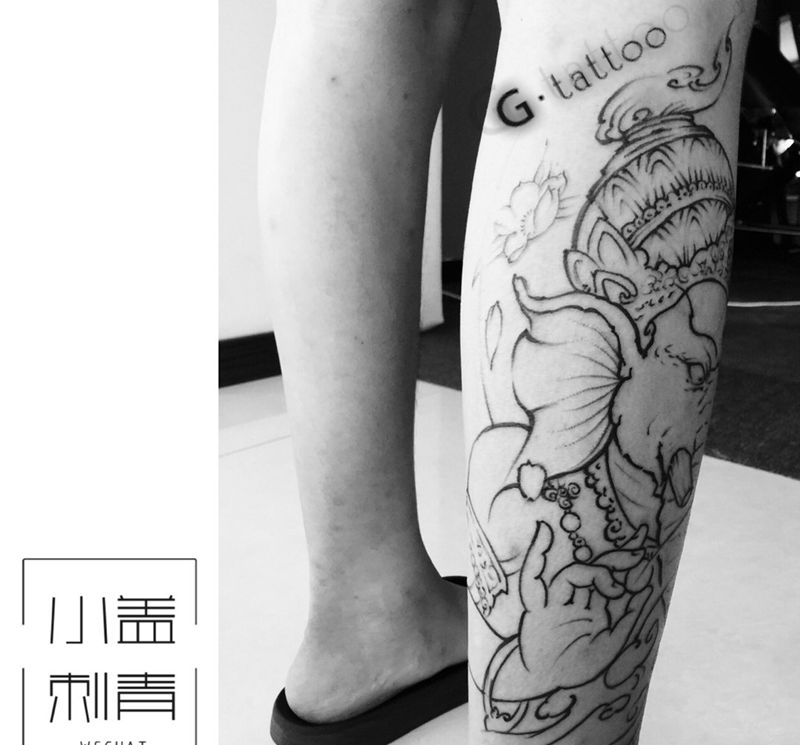 当前位置: 首页 >山西省临汾市纹身店-G·tattoo小盖刺青工作室纹身图案>小腿象神纹身图片_成品手稿腿部传统动物原创情侣纹身图案