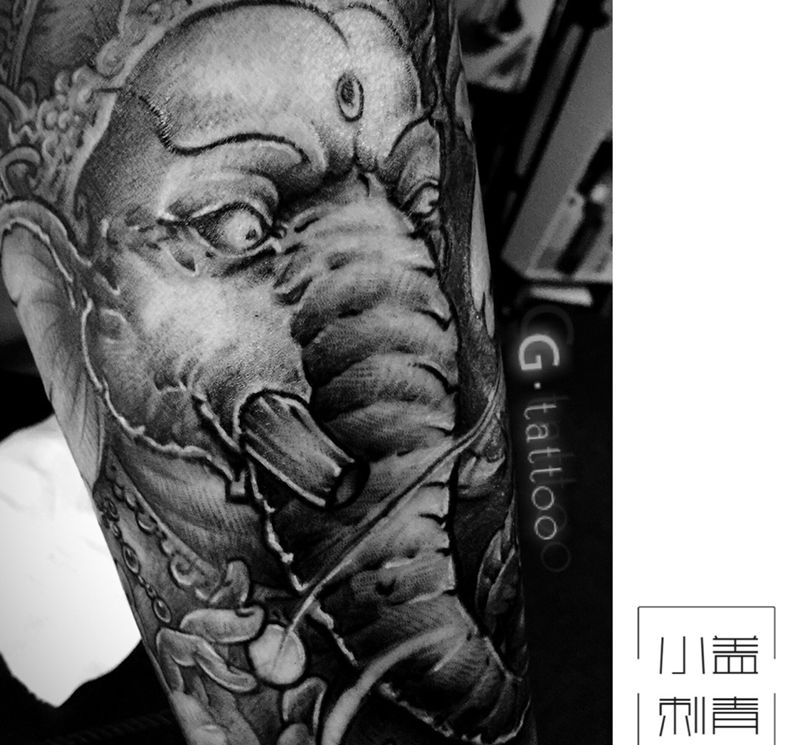 当前位置: 首页 >山西省临汾市纹身店-G·tattoo小盖刺青工作室纹身图案>小腿象神纹身图片_成品手稿腿部传统动物情侣原创纹身图案