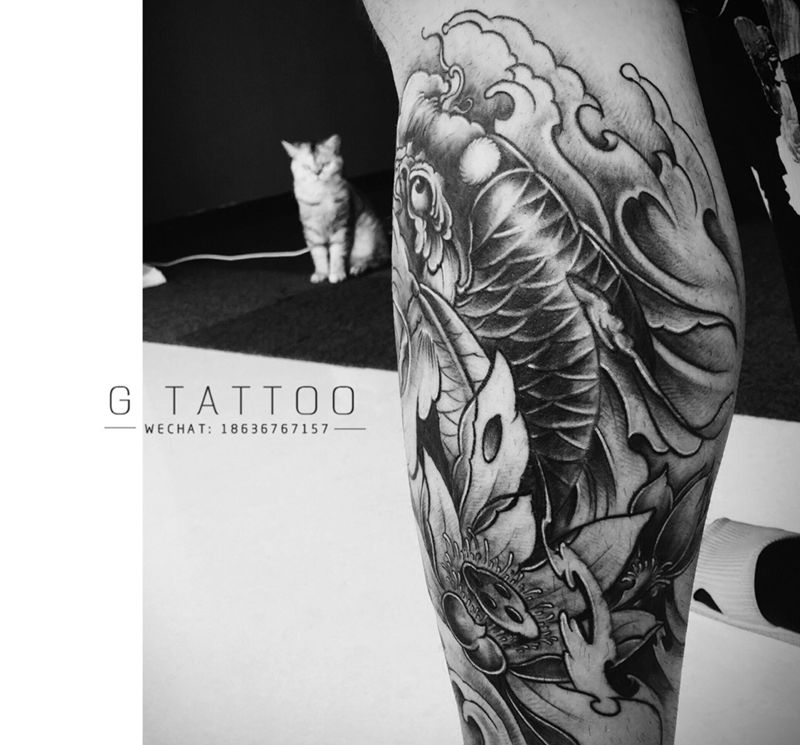当前位置: 首页 >山西省临汾市纹身店-G·tattoo小盖刺青工作室纹身图案>小腿鲤鱼纹身图片_成品手稿腿部传统动物情侣原创纹身图案