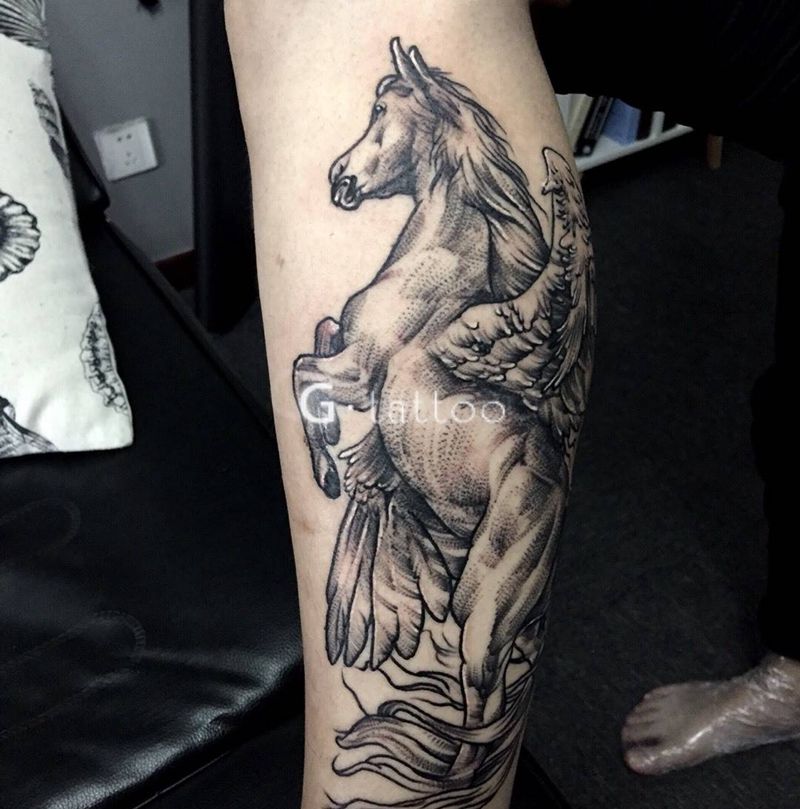 当前位置: 首页 >山西省临汾市纹身店-G·tattoo小盖刺青工作室纹身图案>马(甩针)纹身图片_腿部欧美写实纹身图案