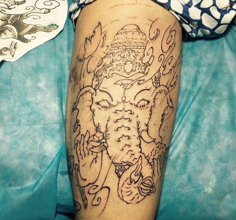 当前位置: 首页 >山西省运城市纹身店-玖叁刺青纹身图案>象神纹身图片