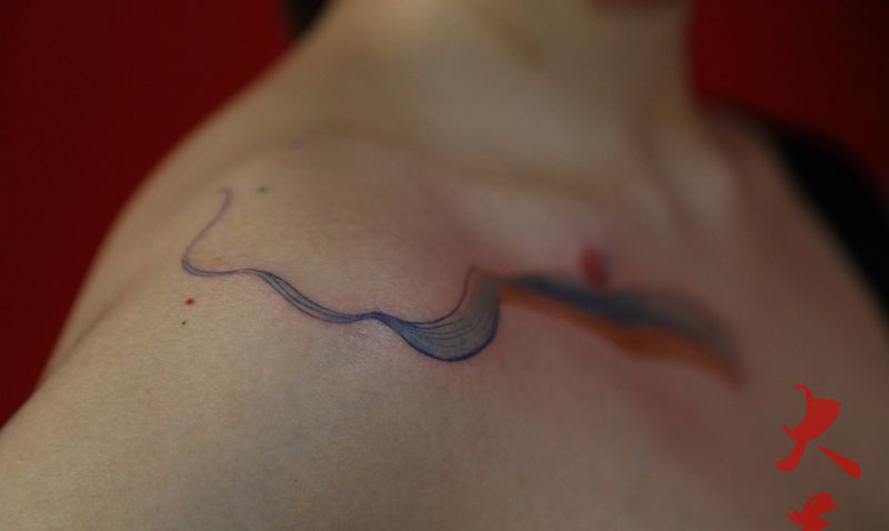 三色水墨线条纹身图片_肩部水墨纹身图案