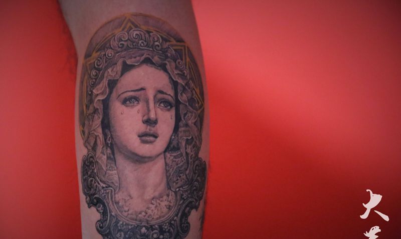 当前位置: 首页 >内蒙古呼和浩特市纹身店-大茶纹身纹身图案>圣母玛利亚纹身图片_腿部欧美写实纹身图案