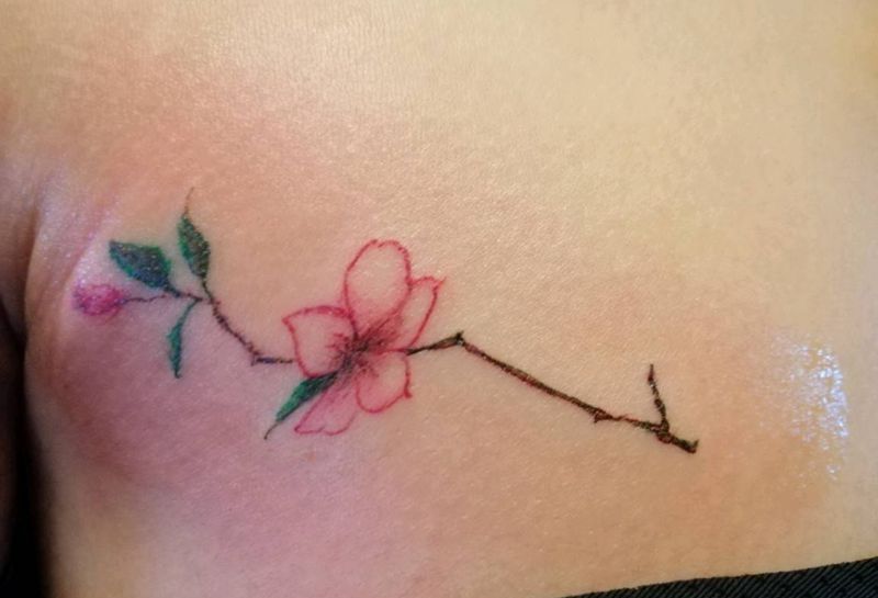 小清新疤痕遮盖纹身图片_胸部水彩纹身图案