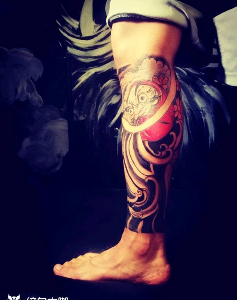 当前位置: 首页 >内蒙古呼和浩特市纹身店-大茶纹身纹身图案>原创浪花达摩花腿纹身图片_腿部老传统图腾纹身图案