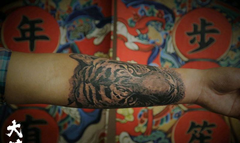 当前位置: 首页 >内蒙古呼和浩特市纹身店-大茶纹身纹身图案>虎头纹身图片_手臂欧美写实纹身图案