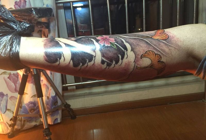 • T网红王老大花腿龙纹身图片_腿部新传统纹身图案