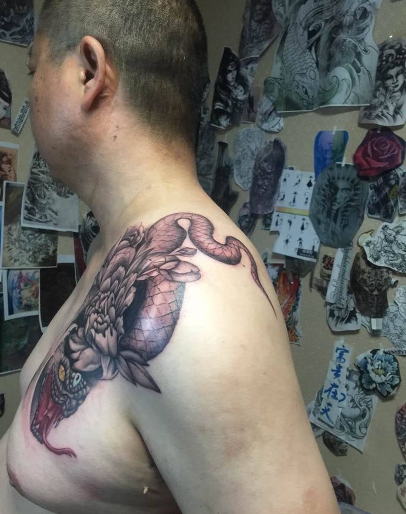 • 女性大花胸纹身_43张霸气漂亮的女性大花胸纹身图案作品