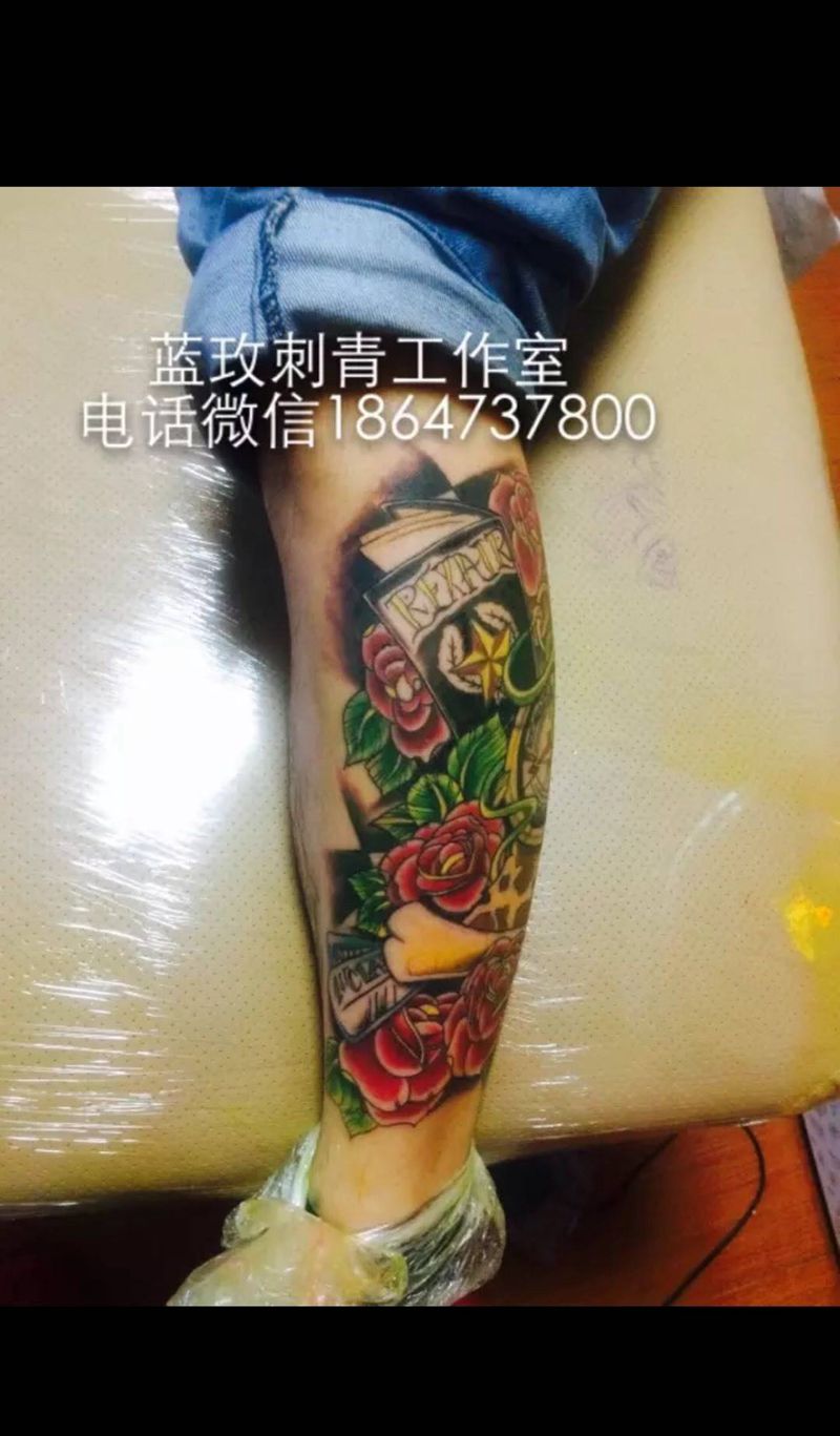 • T网红王老大花腿龙纹身图片_腿部新传统纹身图案