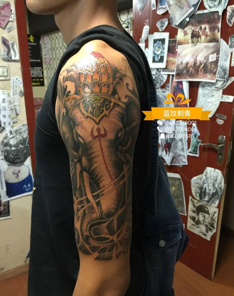 当前位置: 首页 >内蒙古呼和浩特市纹身店-蓝玫刺青纹身图案>象神纹身图片