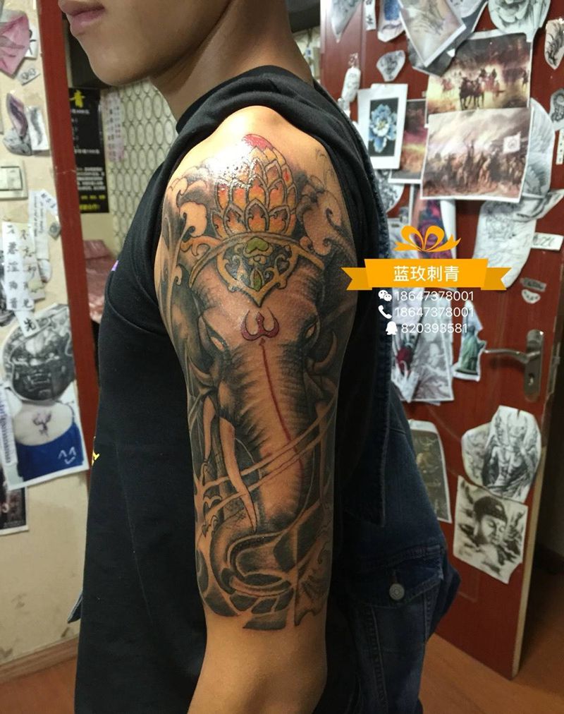 当前位置: 首页 >内蒙古呼和浩特市纹身店-蓝玫刺青纹身图案>象神纹身图片