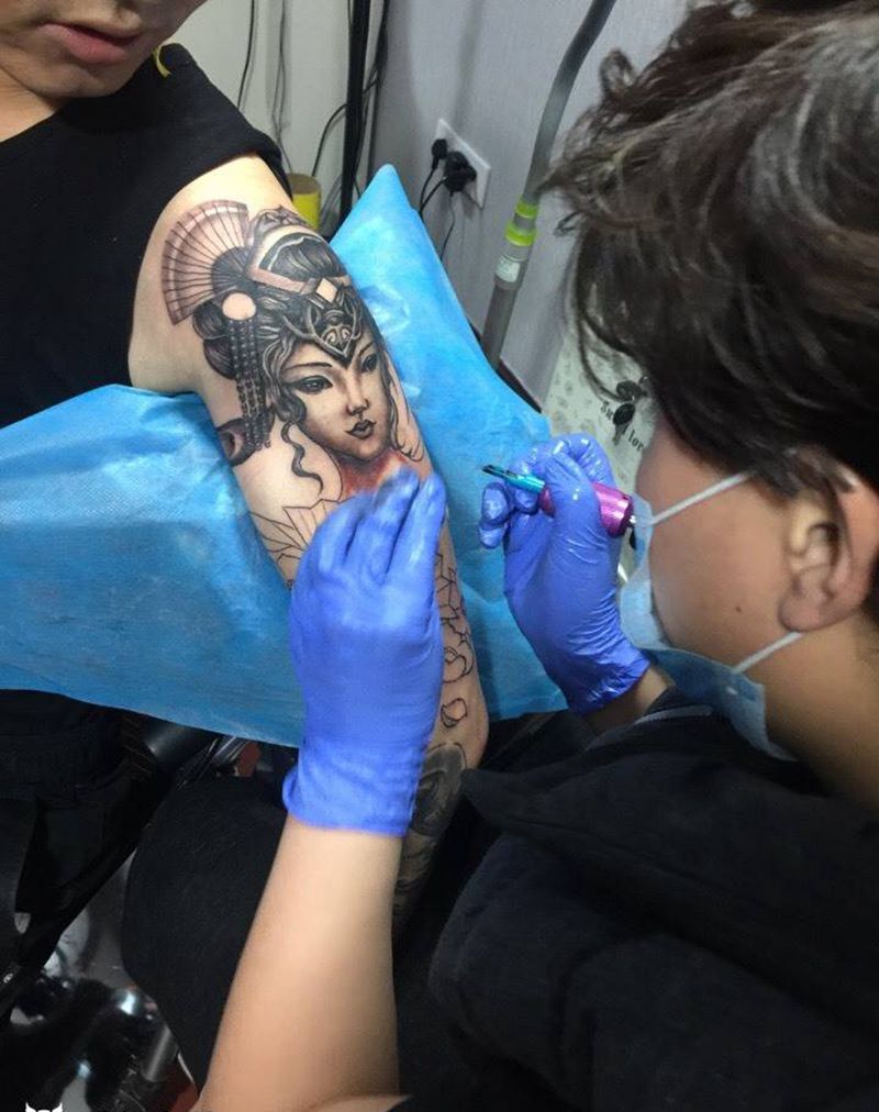 当前位置: 首页 >内蒙古呼和浩特市纹身店-蓝玫刺青纹身图案>艺伎纹身图片