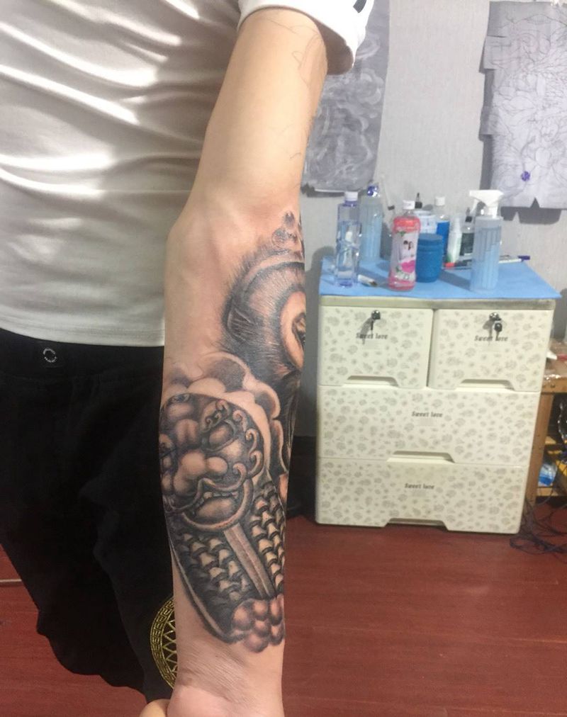 当前位置: 首页 >内蒙古呼和浩特市纹身店-蓝玫刺青纹身图案>猴子纹身图片