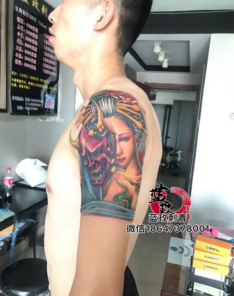 当前位置: 首页 >内蒙古呼和浩特市纹身店-蓝玫刺青纹身图案>艺妓纹身图片_手臂纹身图案