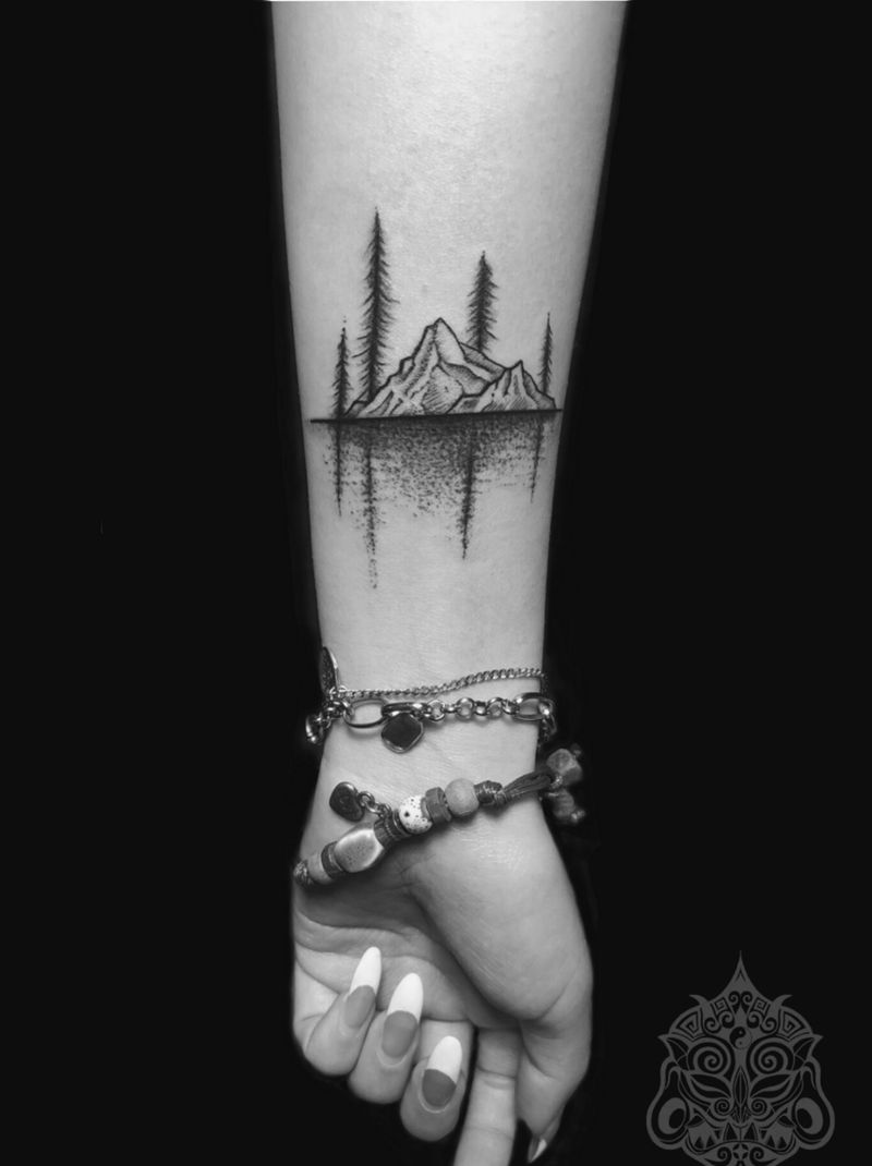 山水遮盖疤痕纹身图片_手臂点刺原创山水纹身纹身图案