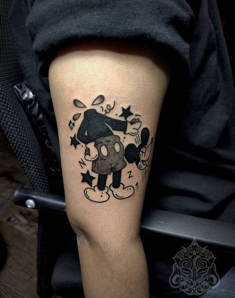 暗黑米老鼠纹身图片_手臂图腾米老鼠暗黑纹身图案