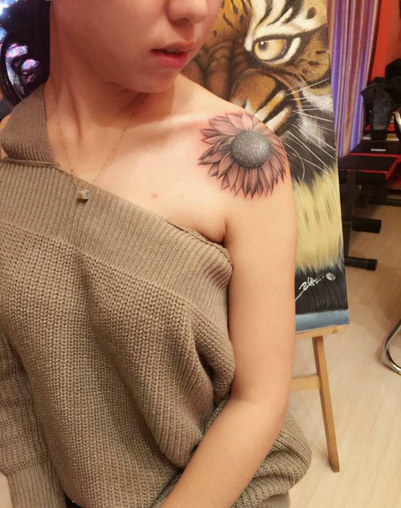 向日葵~小清新纹身图片_肩部腿部清新植物巴依纹身专业纹身纹身图案