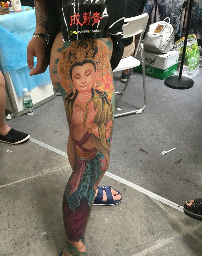 • T网红王老大花腿龙纹身图片_腿部新传统纹身图案