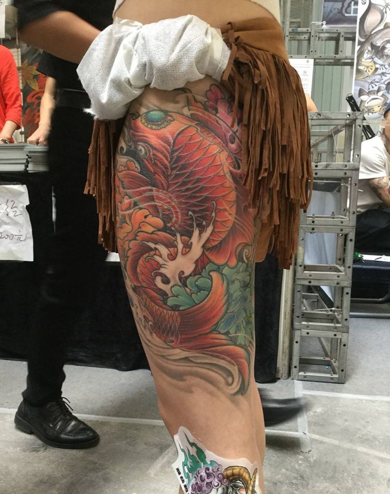 • T网红王老大花腿龙纹身图片_腿部新传统纹身图案