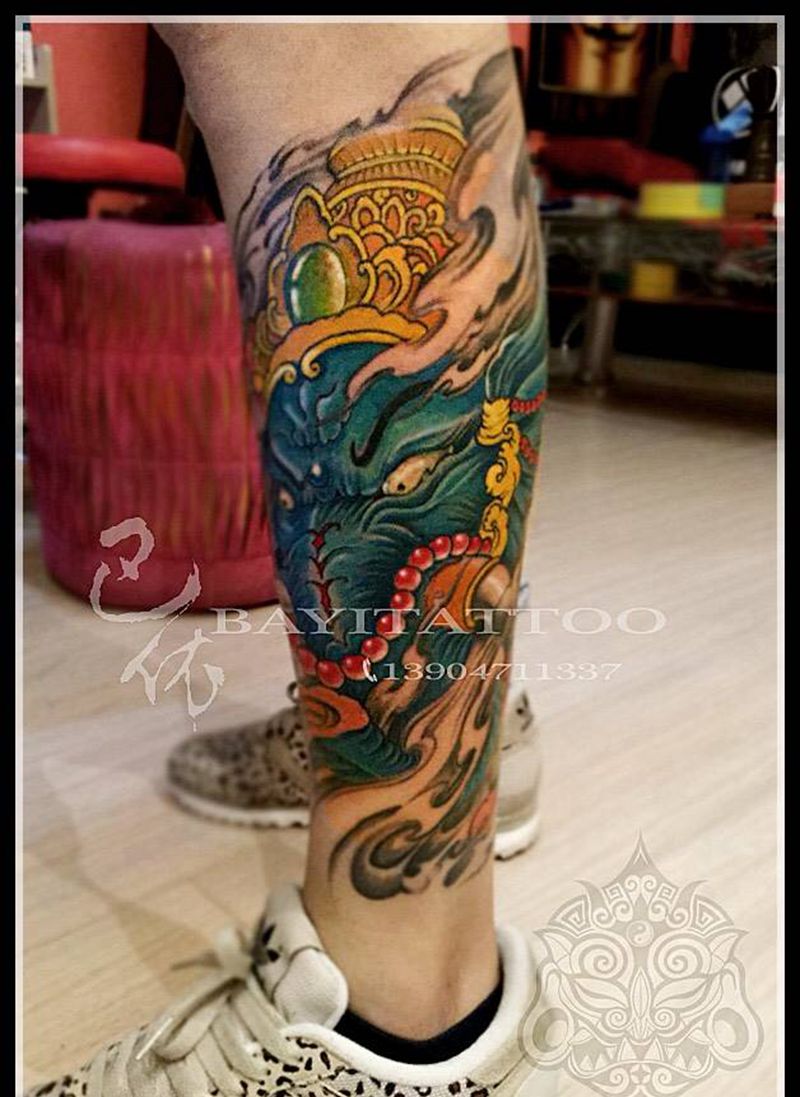 • T网红王老大花腿龙纹身图片_腿部新传统纹身图案