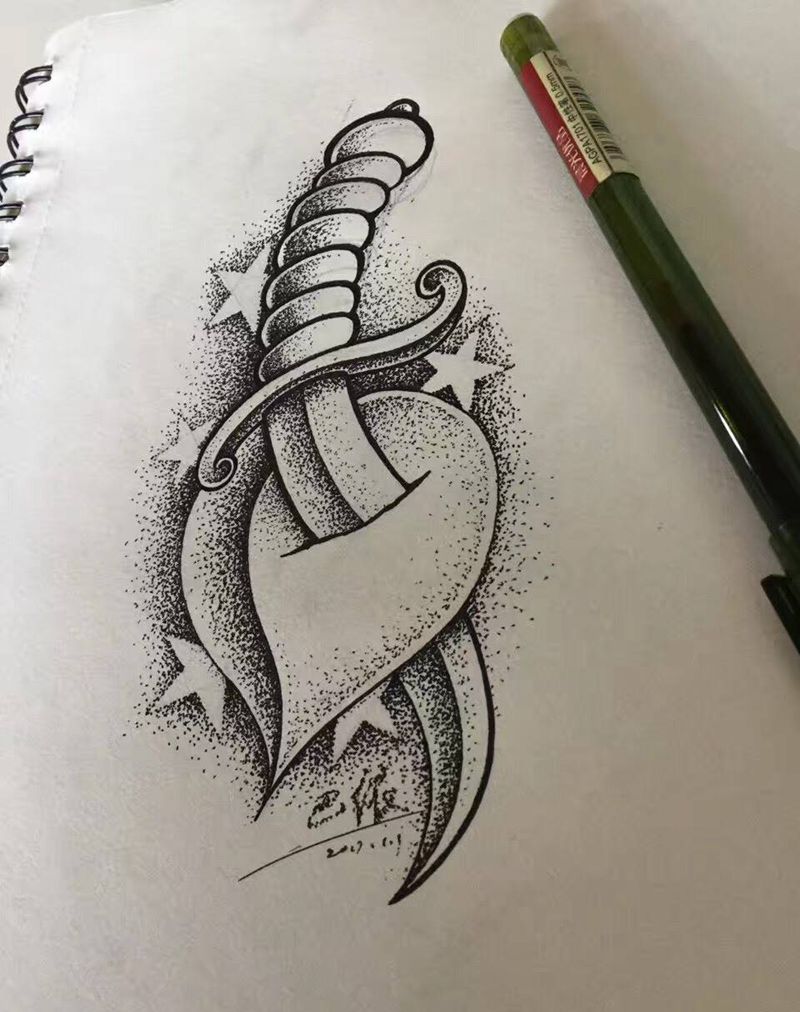 刺心纹身图片_巴依内蒙古专业手稿欧美纹身图案