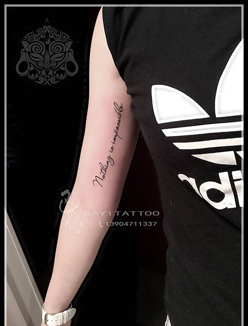 大臂内英文纹身图片_巴依内蒙古专业字符手臂纹身图案