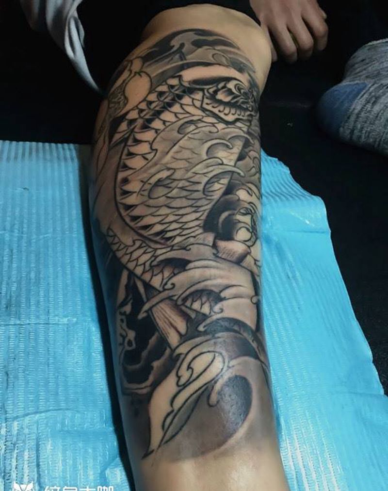 当前位置: 首页 >内蒙古呼和浩特市纹身店-巴依☆TATTOO纹身图案>彩色鱼包小腿纹身图片_巴依内蒙古专业动物传统腿部纹身图案